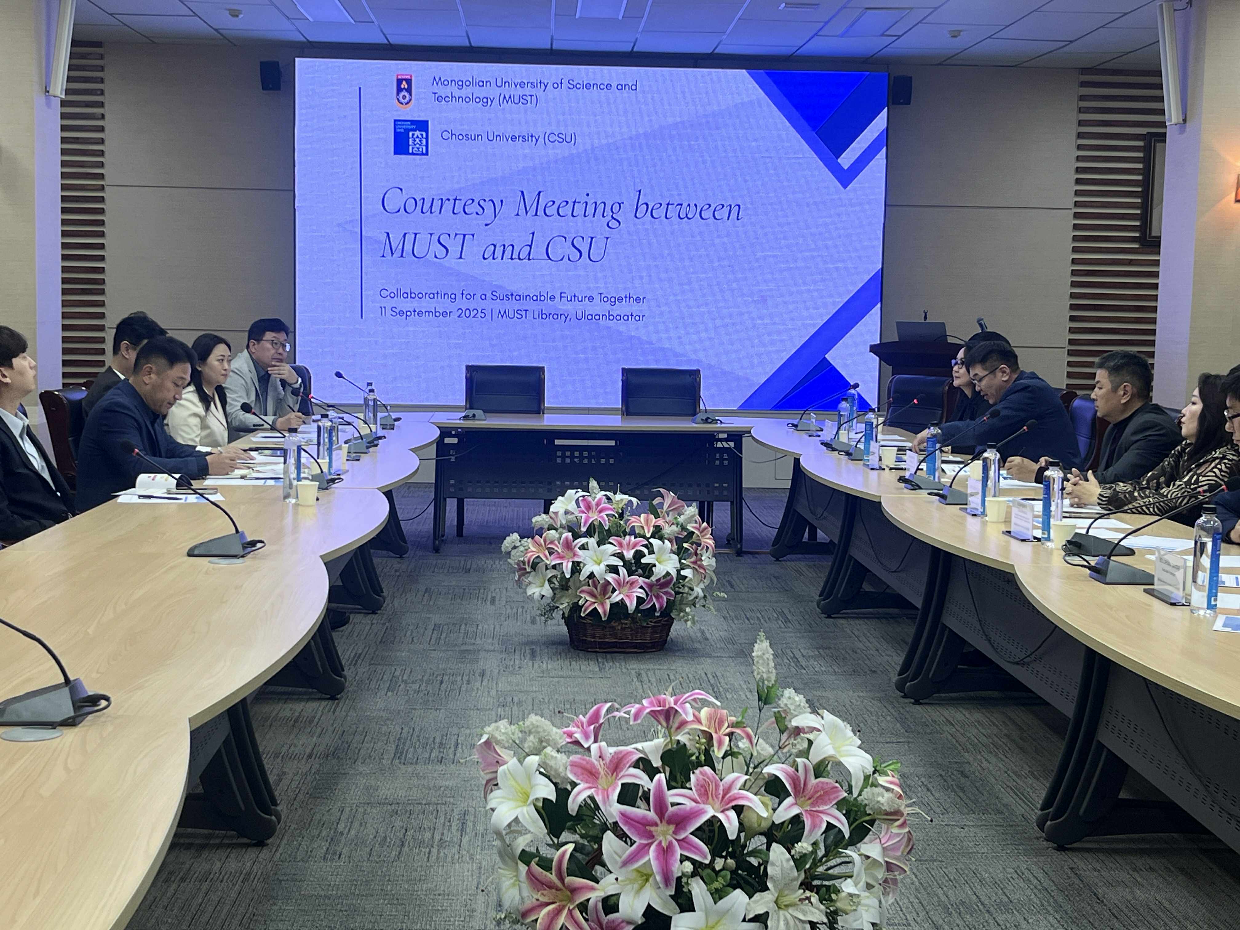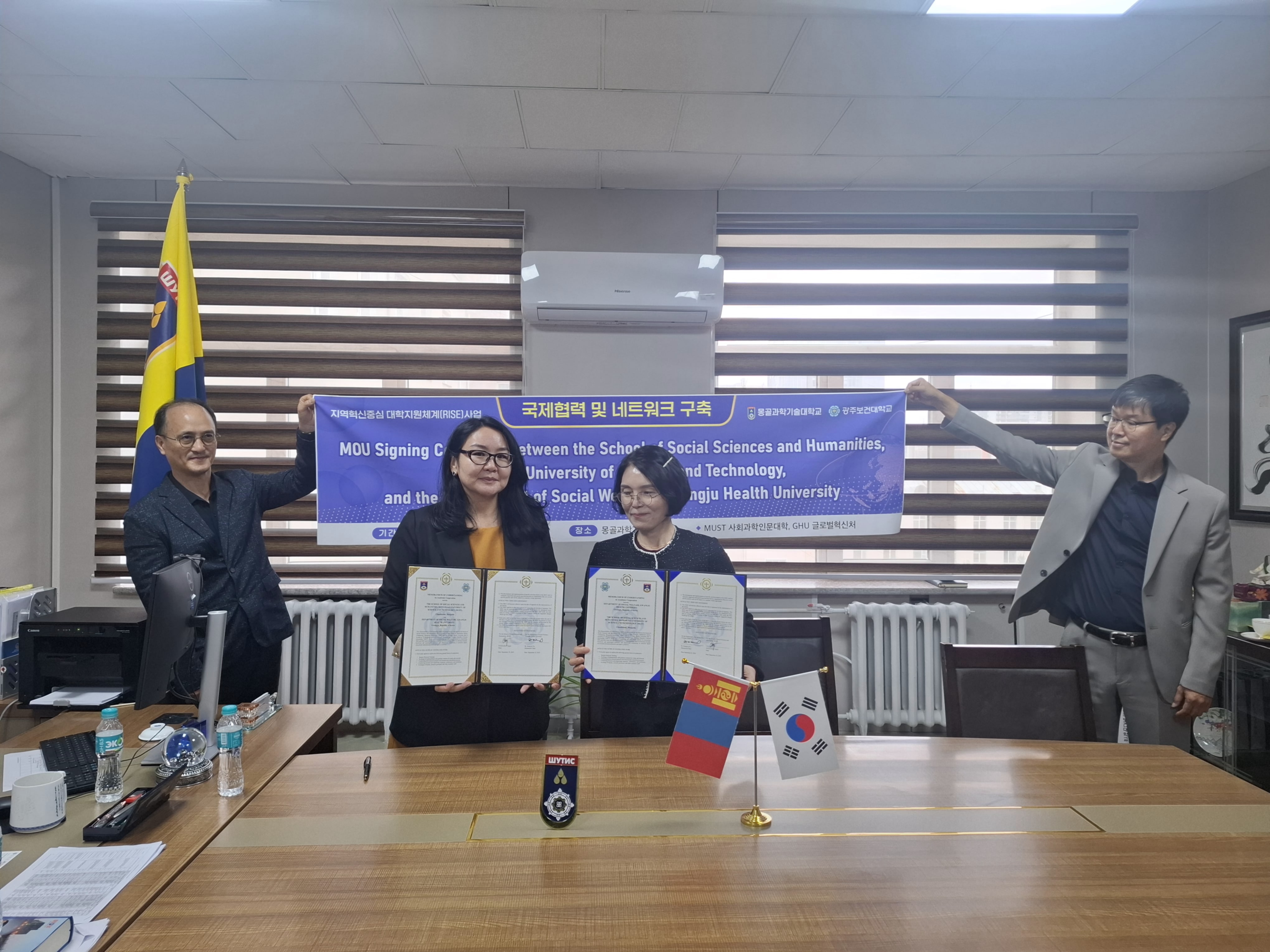 2025 оны 9-р сарын 23-ны өдөр БНСУ-ын Гуанжугийн Эрүүл Мэндийн Их Сургуулийн төлөөлөгчид ШУТИС-ийн НХС-д зочилж Хамтын ажиллагааны санамж бичигт талууд гарын үсэг зурлаа.