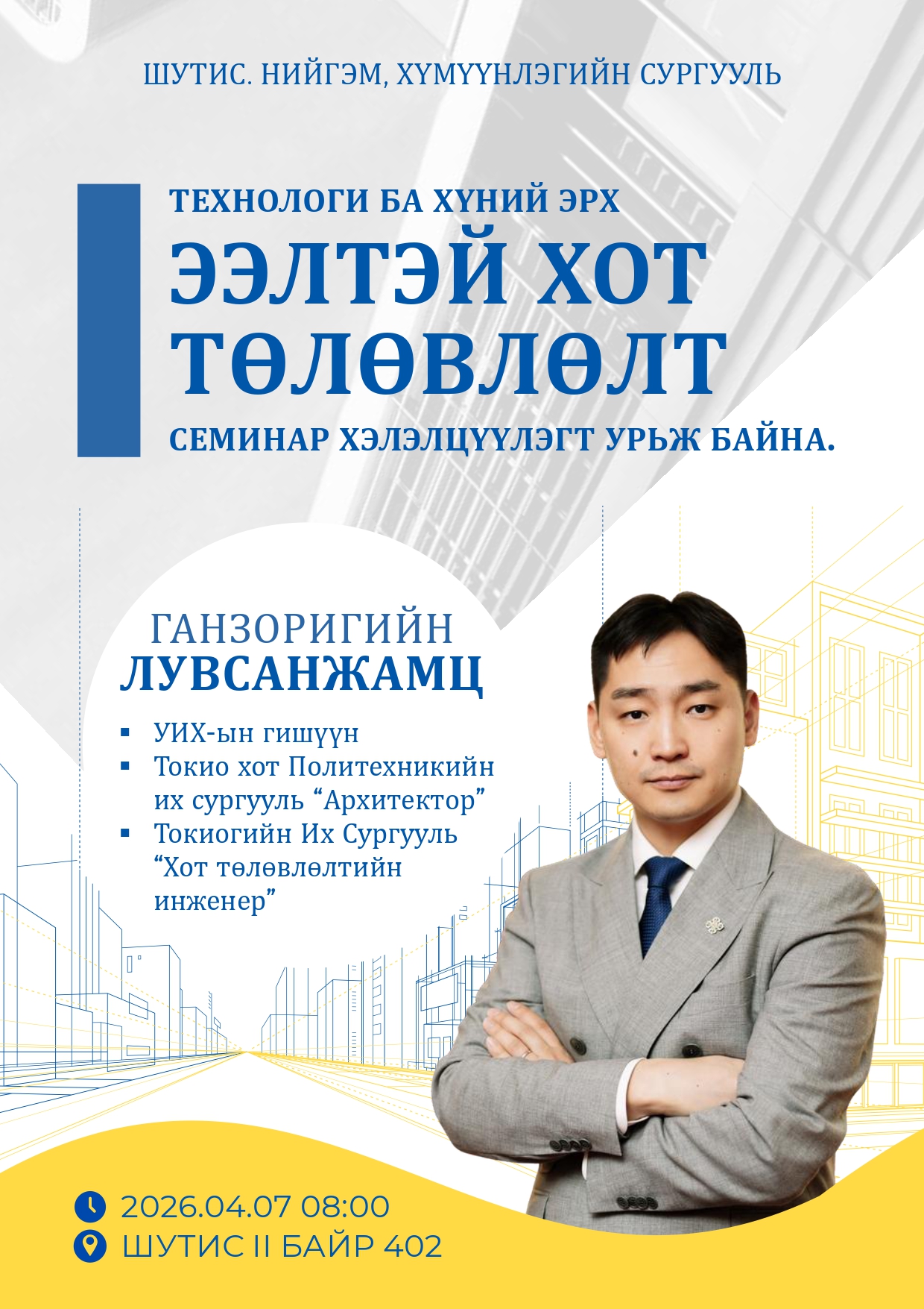 ТЕХНОЛОГИ БА ХҮНИЙ ЭРХ ЭЭЛТЭЙ ХОТ ТӨЛӨВЛӨЛТ СЕМИНАР ХЭЛЭЛЦҮҮЛЭГТ УРЬЖ БАЙНА.