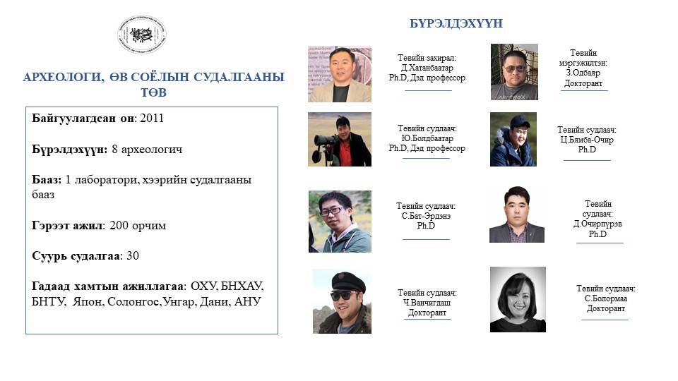 АРХЕОЛОГИ, ӨВ СОЁЛЫН СУДАЛГААНЫ ТӨВ